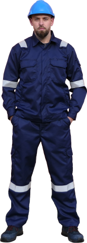Unisex ochranný oblek, nehořlavá tkanina NOMEX (kolečko s R) s antistatickou úpravou a úpravou odolnou proti kapalným chemikáliím typu 6 a typu PB [6]. Oblek je certifikovaný pro použití při svařování a příbuzných postupech dle normy ČSN EN ISO 11611 a pro ochranu před elektrostatickým výbojem dle normy ČSN EN ISO 1149-5.